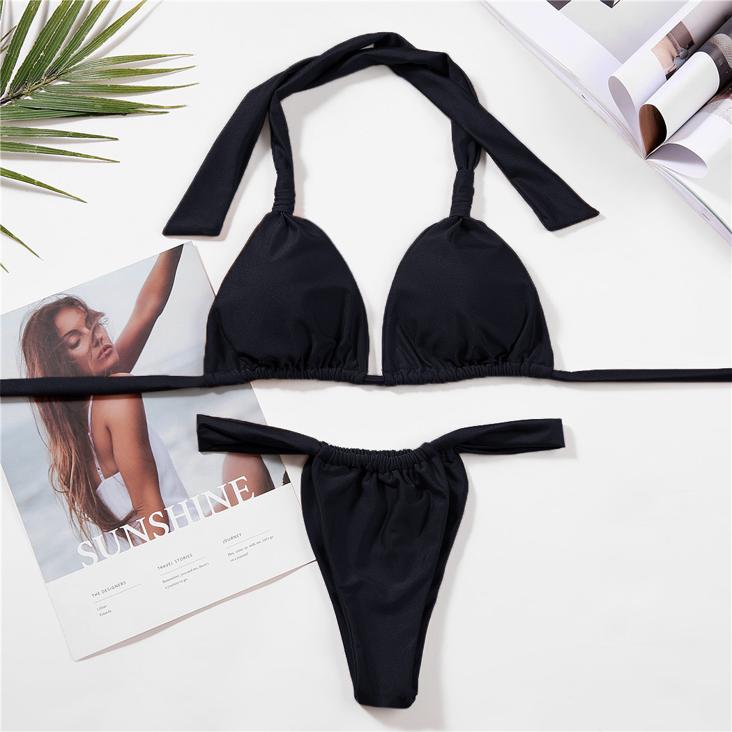 Solid Color Swimsuit Bikini Strap Chest Pad Sexy Multi Color Bright