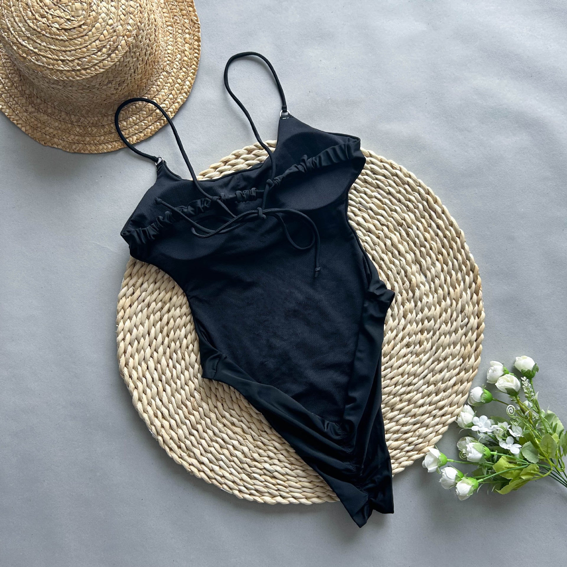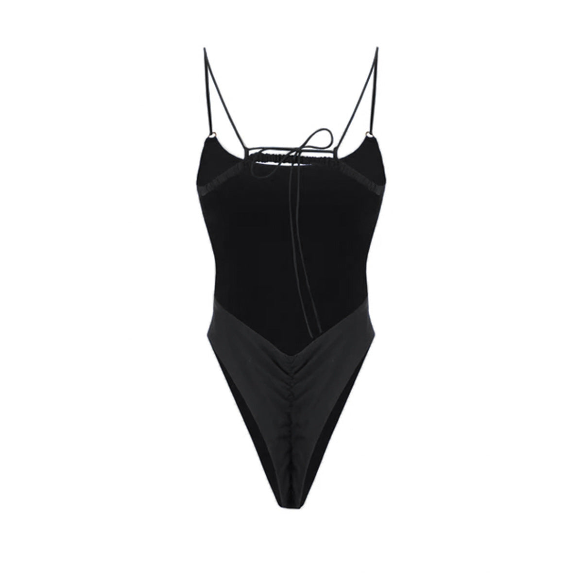 Get ready to turn heads with our Miami Muse swimsuit! This one piece features a classic essential design with high cut thong scrunch bottom and open back silhouette with string ties. The padded cups provide extra support and the nylon fabric is perfect for summer. Whether you're lounging on vacation or hitting the beach, this suit will make you feel like a true muse.