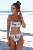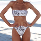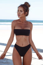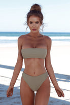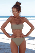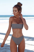 Women’s Sexy, Two Piece Set. Bandeau Tube Top, With Back, Hardware Clasp. High Cut, Full Bottom. Bikini Swimsuit.